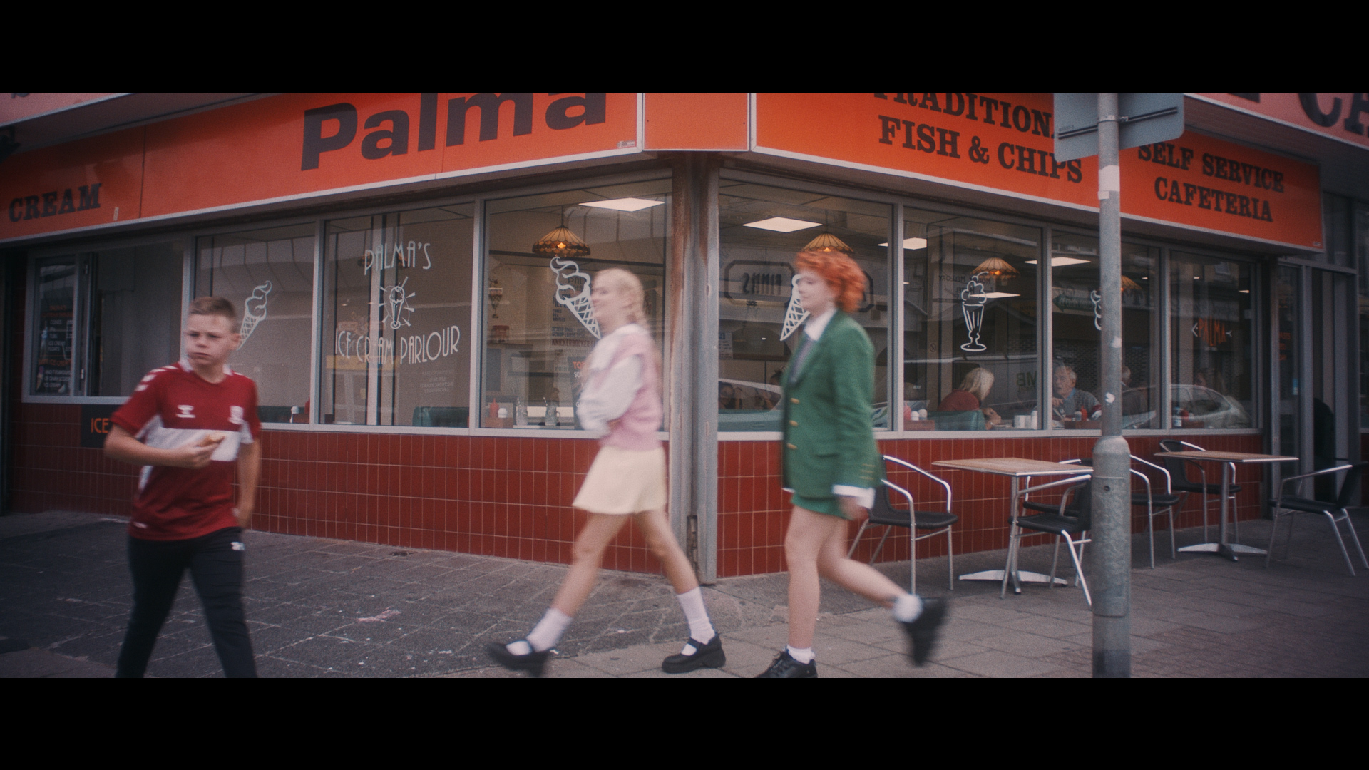 SO GROWN UP! Phoebe and her best friend Izzy relive poignant teenage nostalgia as they navigate the moody streets of their childhood home, Blackpool, re-enacting memories from their youth. The tender and mature lyrics reflect on their experience of heartbreak, the pain of reality and the desire to remain youthful indefinitely. I wanted to retain a warm bittersweet glow of childhood nostalgia, whilst pairing this with the brutalist, coastal arcade mania of Blackpool, with its contradictory scenery. I aspired to give this a ‘coming-of-age’ narrative grit whilst allowing for intimate portraits of Phoebe and Izzy with an innocent gaze.